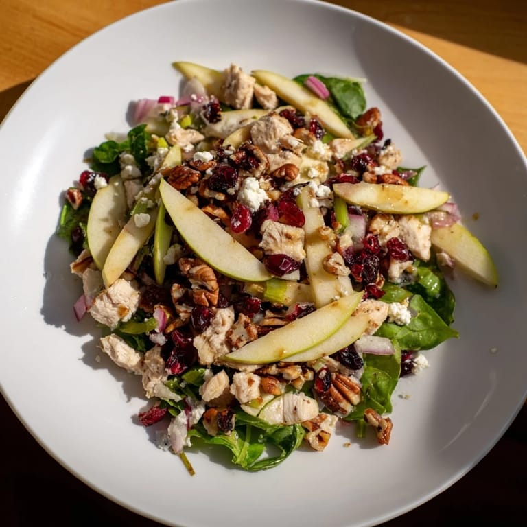 Save I threw this salad together on a gray January afternoon when I desperately needed something bright on my plate. The apples were sitting in a bowl on the counter, the chicken was cold in the fridge from dinner two nights before, and I was tired of soup. What started as a way to use up leftovers turned into something I now crave every winter when the air gets sharp and the days feel too short.