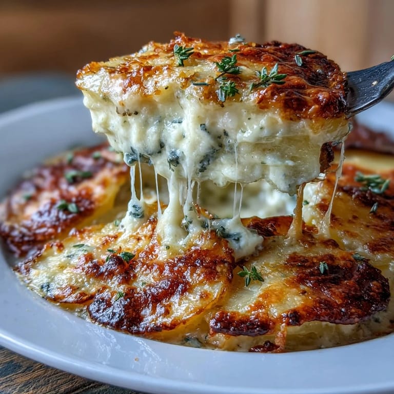 Save This dish transforms humble potatoes into a luxurious side, harnessing the nutty depth of Gruyère cheese and aromatic thyme. Its gluten-free potential and vegetarian profile make it accessible for many diets without sacrificing flavor or texture.