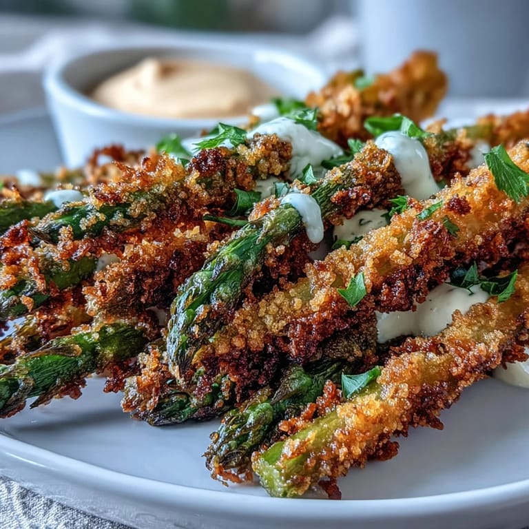 Save My roommate challenged me to make vegetables exciting, and these chili-garlic asparagus fries became my secret weapon. The first batch came out of the oven looking like golden batons, and the kitchen filled with this intoxicating mix of toasted garlic and paprika. She grabbed one right off the baking sheet without asking, and I knew I'd cracked something special. It turns out crispy coating and bold seasoning can make even vegetable skeptics pause mid-bite and ask for the recipe. These fries have since become my go-to when I need something that feels indulgent but isn't.