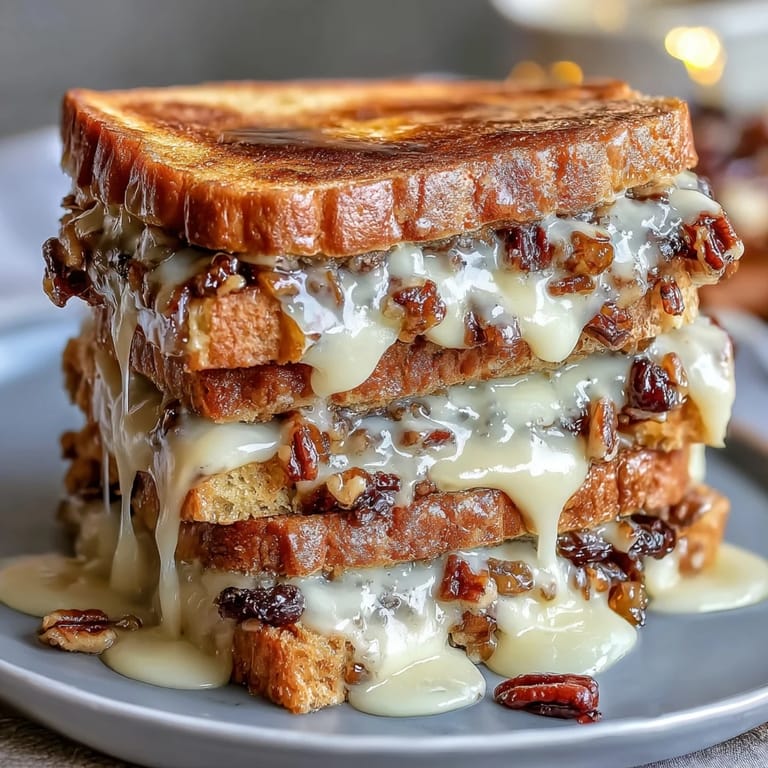 Save This recipe highlights how simple pantry staples can come together to create an irresistible dessert that is both hearty and sweet. The combination of toasted bread with a fragrant syrup infused with cinnamon and cloves brings warmth, while raisins add bursts of chewy sweetness and cheese adds a melty, comforting layer. It’s a dish that invites sharing and evokes a sense of home and tradition.