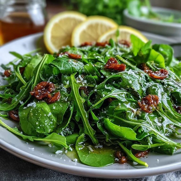 Save Discover a bright, zesty salad that perfectly balances the peppery bite of fresh arugula with a tangy lemon vinaigrette and delicate shavings of Parmesan cheese. This Lemon Vinaigrette Arugula Salad is an effortless way to bring vibrant Italian flavors to your table, making it an ideal starter or refreshing side dish for any occasion.