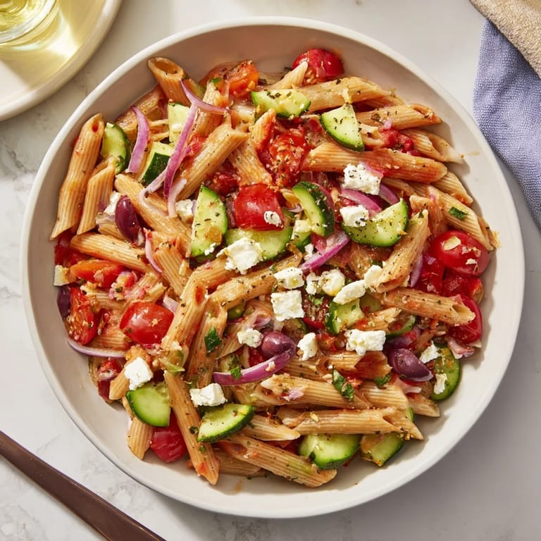 Save Last spring, I threw together this pasta salad on a warm Saturday afternoon when I needed something bright and filling but had zero patience for anything heavy. I tossed cold pasta with whatever I had in the fridge, and the combination of briny olives, creamy feta, and that sharp lemon dressing hit so perfectly that I made it three weekends in a row. My neighbor leaned over the fence and asked what smelled so good, even though it was a cold dish. That's when I knew this one was a keeper.