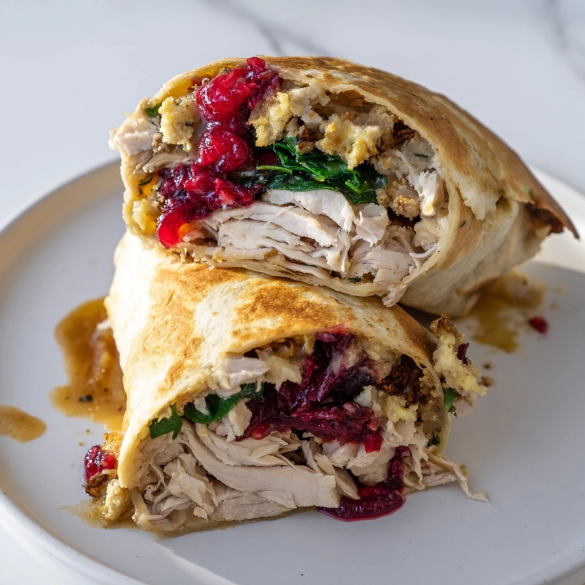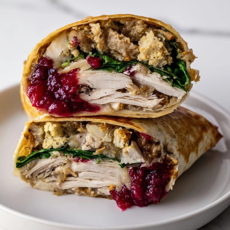 Lightly soaking the bread in hot gravy and controlling moisture from cranberries and greens helps maintain a balanced texture. Toasting the wrap seals the ingredients and prevents sogginess.