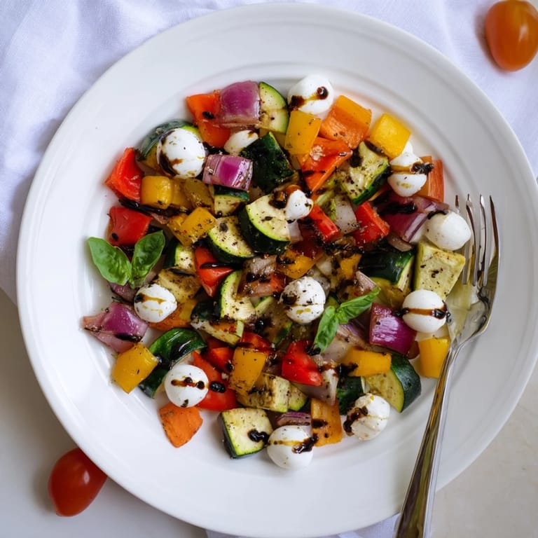 Save My oven timer went off just as my neighbor knocked on the door, and I panicked thinking I'd burned the vegetables. Instead, I opened the oven to the most gorgeous caramelized peppers and zucchini I'd ever seen, their edges golden and sweet-smelling. She ended up staying for lunch, and we ate this salad straight from the baking sheet with forks, laughing at how something so simple could taste so bright. That afternoon taught me that roasting vegetables transforms them into something almost dessert-like, especially when you let them go just a little longer than you think. Now I make this salad whenever I want to feel that same kind of easy, unplanned joy.