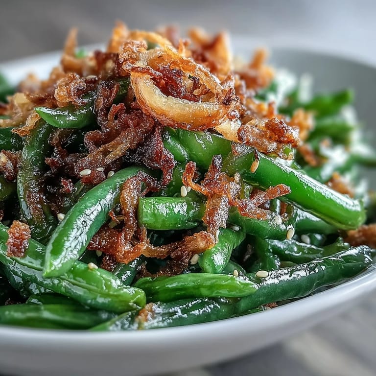 Save My neighbor handed me a container of these green beans at a dinner party years ago, and I watched people circle back to that dish three times before touching anything else. There was something magnetic about the way the crispy onions caught the light, and when I finally tasted them, I understood—it wasn't just vegetable as an afterthought, it was the star. Now whenever I need a side dish that actually gets remembered, this is what I make.