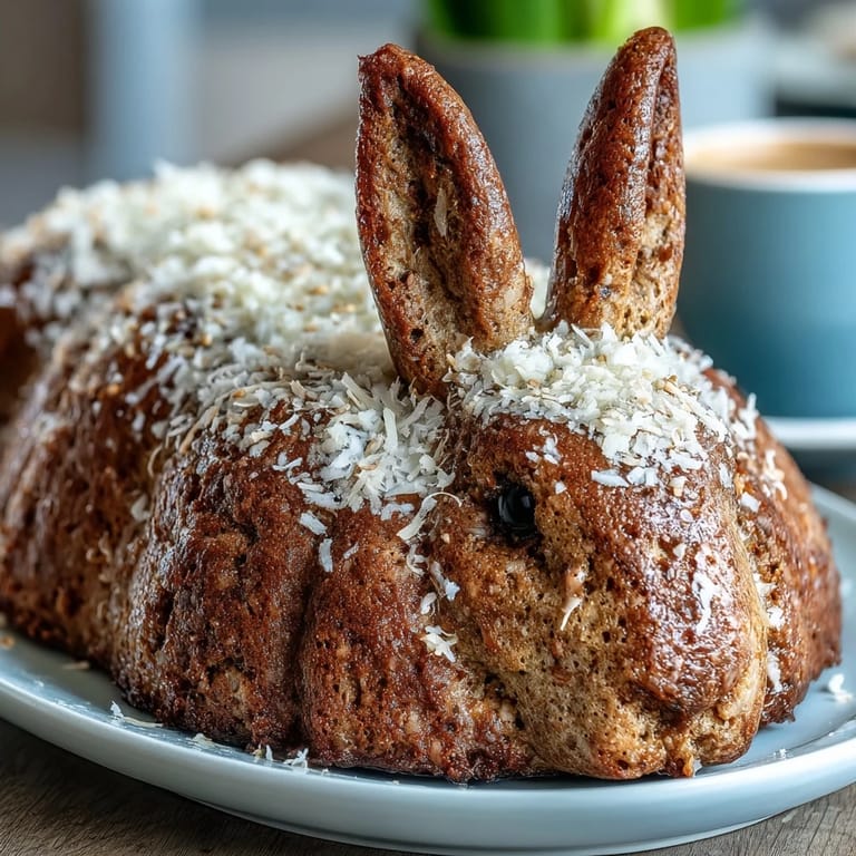 Save My daughter spotted this bunny cake in a magazine and wouldn't stop talking about it for weeks. When Easter finally rolled around, I decided to attempt the whole thing—the shapely ears, the coconut fur, those tiny marshmallow teeth—and somehow it all came together in a way that felt like pure kitchen magic. There's something about building a cake character piece by piece that makes you feel less like you're baking and more like you're sculpting edible joy. The moment she saw it sitting on the table, her eyes went wide, and I knew every slightly wobbly ear was worth it.