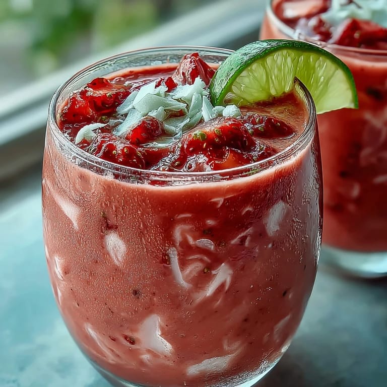 Save My roommate came home with a farmers market haul one Saturday morning, and somehow a pile of strawberries ended up in my freezer while I was daydreaming about tropical vacations I couldn't afford. That same afternoon, I grabbed a can of coconut milk out of pure impulse and decided to stop pretending I needed a plane ticket when I could just blend my way to the islands instead. The first sip of this smoothie hit different—creamy, bright, utterly uncomplicated—and suddenly my tiny apartment kitchen felt like somewhere I actually wanted to be on a warm day.