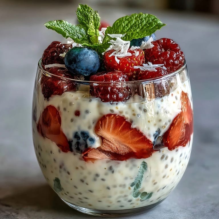 - Sprinkle coconut flakes across the top and tuck a few mint leaves into the berries for color and freshness. These toppings stay crunchier if you add them right before serving rather than hours in advance.