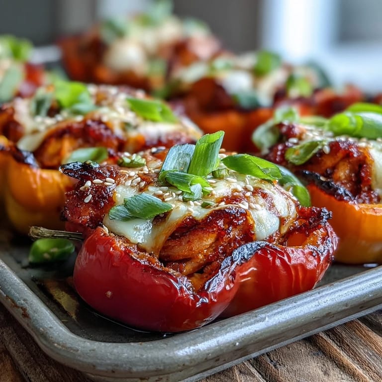 Save A friend handed me a container of gochujang at a farmers market last summer, insisting I needed to stop making the same old stuffed peppers. That small red jar sat on my counter for weeks until I had mini peppers piling up and ground turkey thawing. Something clicked when I mixed that funky, spicy paste with honey and soy sauce—suddenly my kitchen smelled like Seoul instead of suburbia. These Korean-style stuffed peppers became my answer to her challenge, and now they're impossible to stop making.