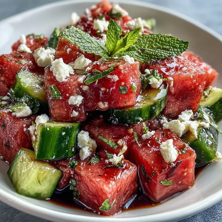 Save Last summer, my neighbor showed up with this salad to a potluck, and I watched people go back for thirds without touching anything else on the table. The way the sweet watermelon played against the salty feta caught me completely off guard—I'd never thought to pair them before. When she told me it took barely fifteen minutes, I became slightly obsessed with recreating it. Now it's my go-to when I need something that feels fancy but requires almost no actual cooking.